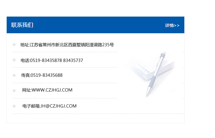 傳真:0519-83435688    郵編:213135    網址:WWW.czjhgj_com.sxhongrun.com    電子郵箱:JH@czjhgj_com.sxhongrun.com